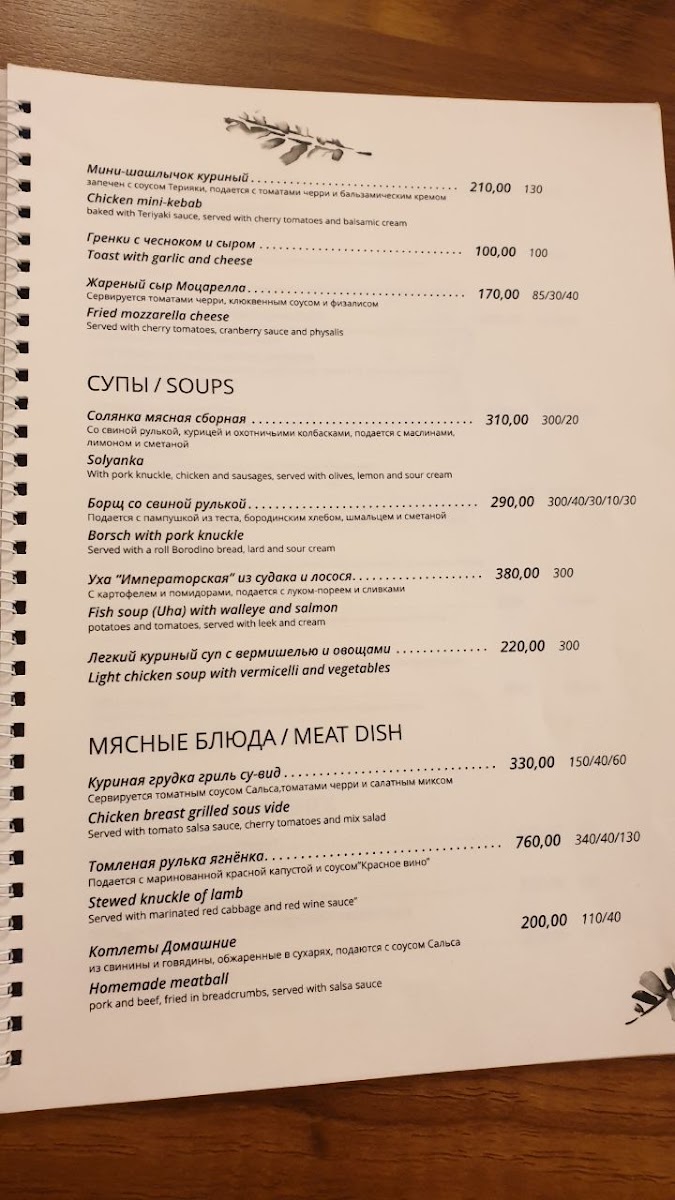 Located at Sankt-Peterburgskiy Prospekt, Truvel' invites diners to enjoy a delightful array of traditional Russian and contemporary dishes. The menu features enticing snacks like the rich appetizer “Schmalz,” which pairs perfectly with toasted black bread, and salted pears served with sour cream for a refreshing twist. For those seeking warmth, the soups like Solyanka and Borscht with pork knuckle promise hearty satisfaction.